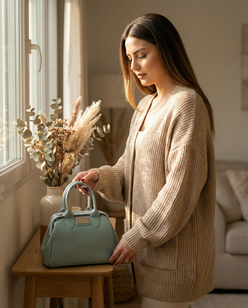 Finitions Dorées : Ferrures et charm initiales qui ajoutent une touche luxueuse.