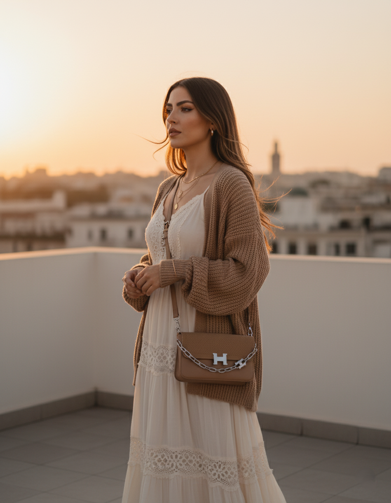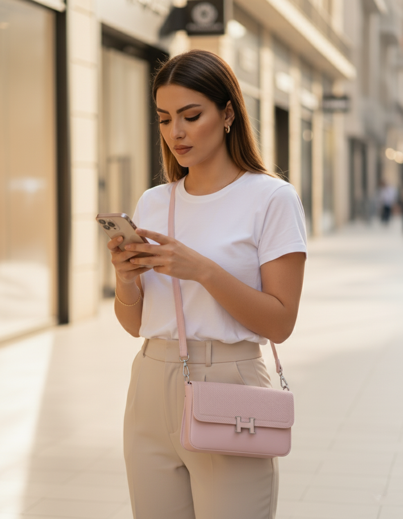 Fermoir Distinctif "H" : Élément en métal argenté pour un contraste élégant.